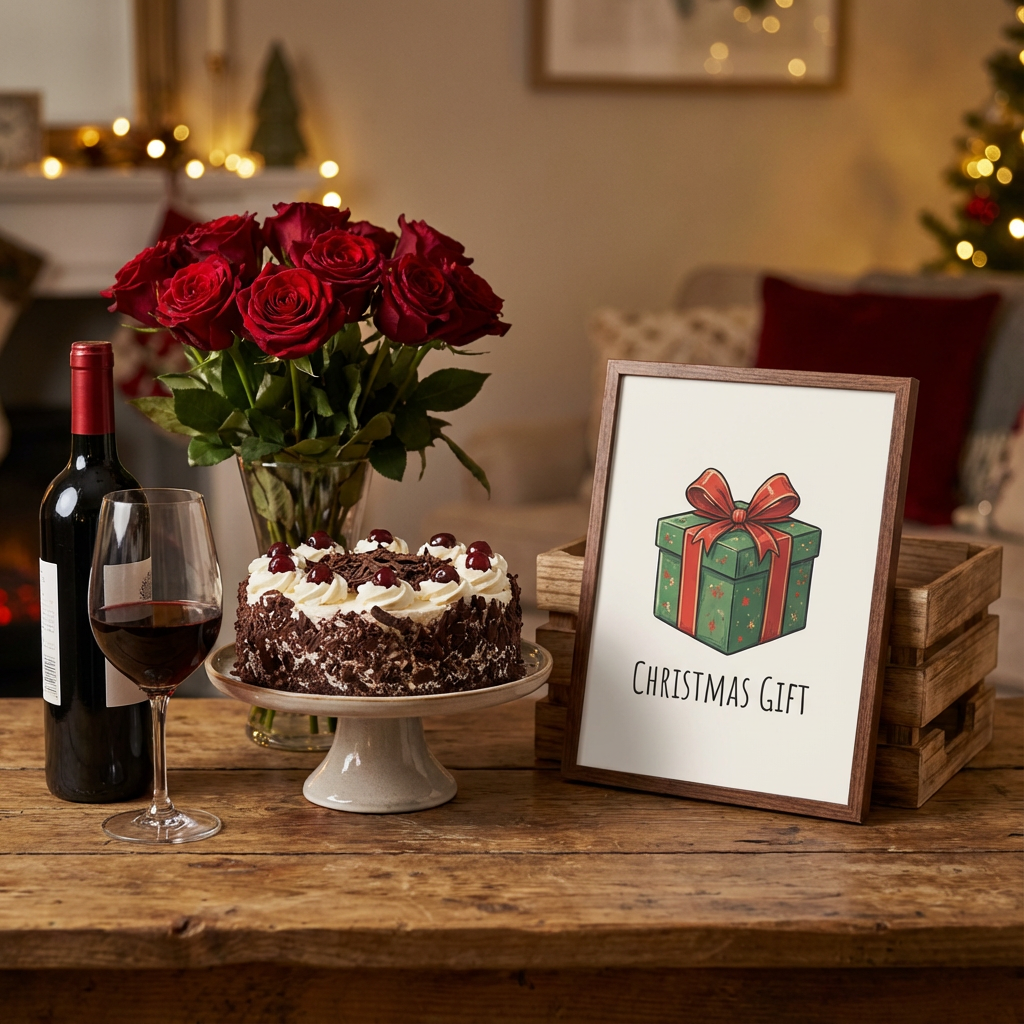 Premium Bottle + Premium Bouquet + Cake + Holiday Gift Box